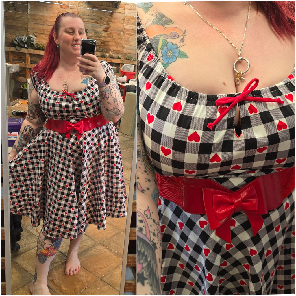 HB Leonie dress in a 2xl review. This dress fits perfectly the elastic around the arms and chest is firm but has lots of room to stretch.